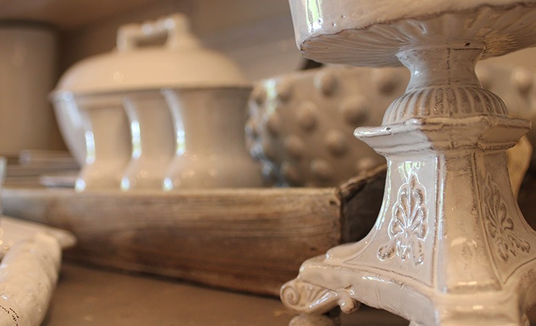 Astier de Villatte exquisite ceramics are entirely handmade in Paris, France. Made of black terracotta clay, Astier de Villatte uses a unique technique to craft each piece to amplify the unique character of the clay, celebrating its imperfections and ensuring that no two pieces are exactly alike. Inspired by 18th and 19th century designs, each piece is hand glazed to create a beautiful, milky white finish.